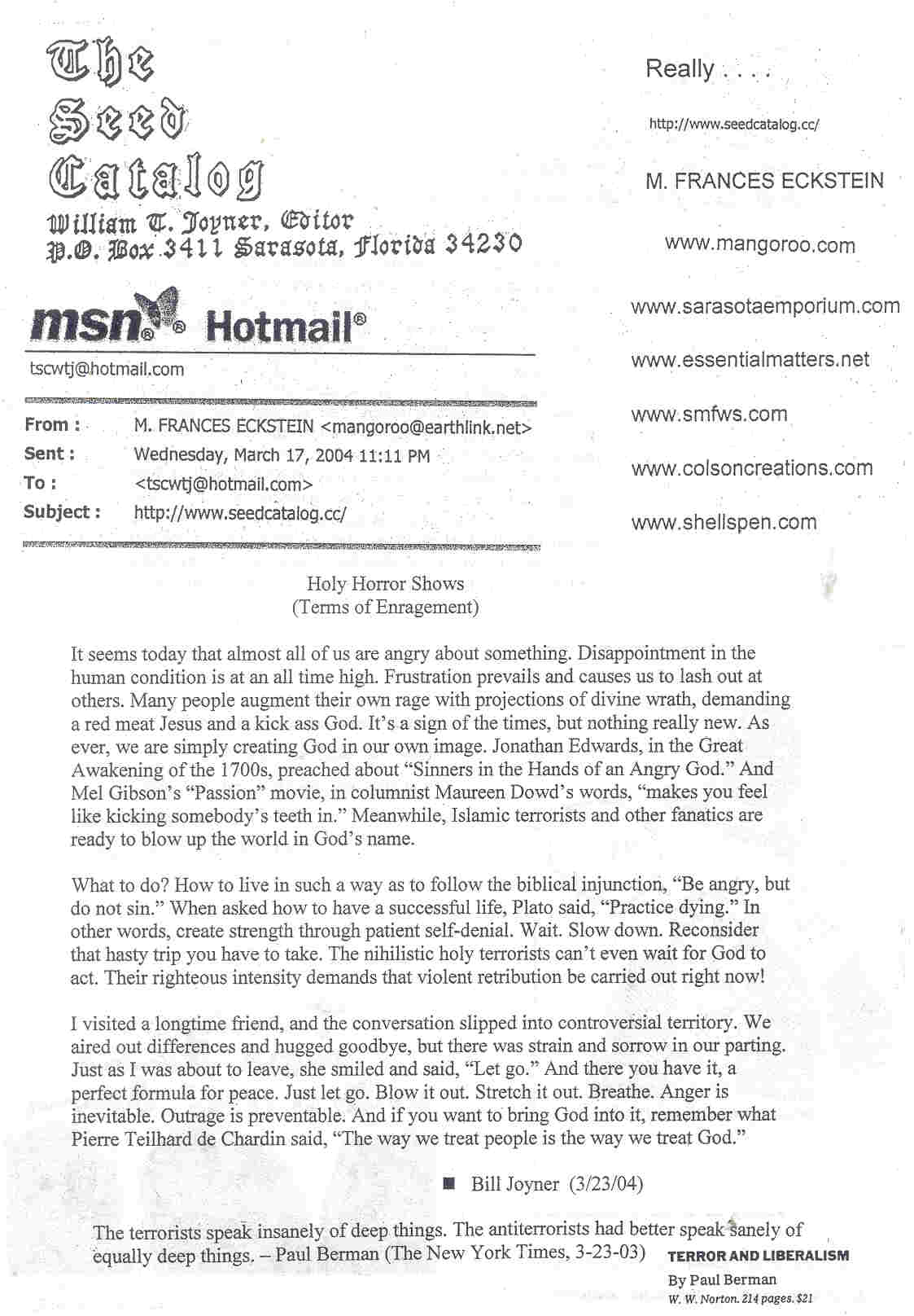 --Bill Joyner / P.O. Box 3411 / Sarasota, FL 34230